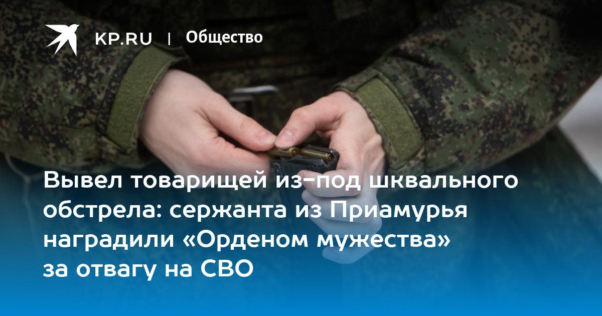 Сержант из Амурской области Игорь Козлов награжден Орденом Мужества за героизм, проявленный в зоне СВО. Осенью 2020 года его призвали в железнодорожное соединение Восточного военного округа, которое стоит в Приамурье. Игорь сразу втянулся в эту сферу: привык к дисциплине, понял, что армия – его путь, а уже в мае 2021-го подписал свой первый контракт. Подробнее - в материале «Комсомольской правды» - Благовещенск».